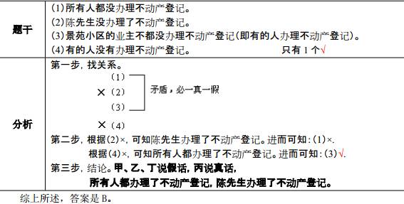 1.在某市不动产登记中心,甲、乙、丙、丁四个办证人员有如下断定: