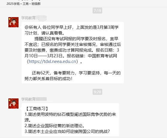 咱们学苑的老师对于班群学生来说,那必须得是点对点通知到才行,那真是不厌其烦,苦口婆心哪!还有微信群内每天发的学科练习,就为了提醒大家积极学习,不放过任何可利用的时间,哪怕你今天太忙只看了一眼,万一就考这个知识点了呢!